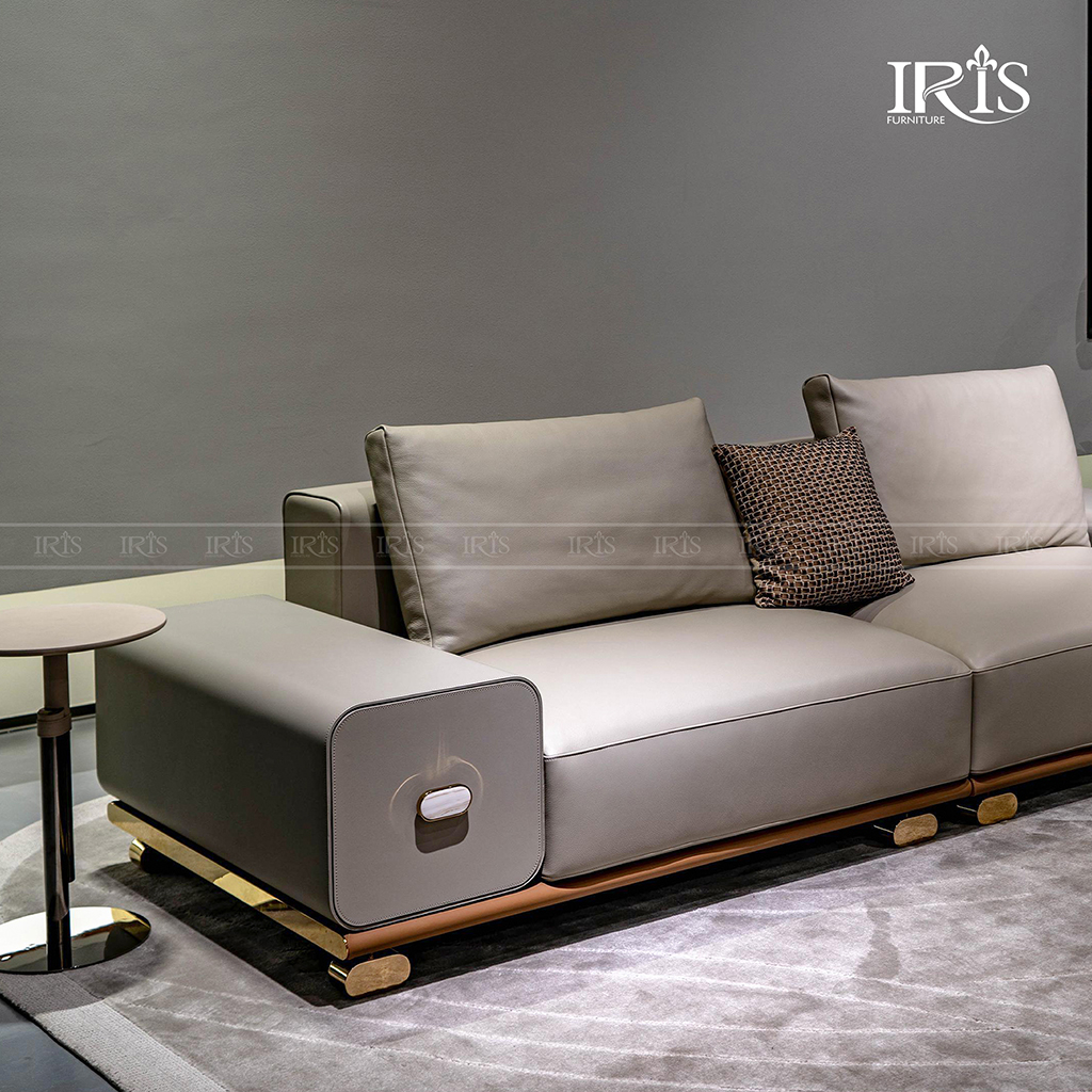 Sofa Anna Casa được bọc hoàn toàn bằng da bò thật nhập khẩu Châu Âu, đem lại cảm giác êm ái và thư giãn khi ngồi. Chất liệu này thường được sử dụng trong các dòng ghế sofa cao cấp tại IRIS vì có độ bóng, độ nhăn tự nhiên và độ bền cao hơn các loại da công nghiệp khác.