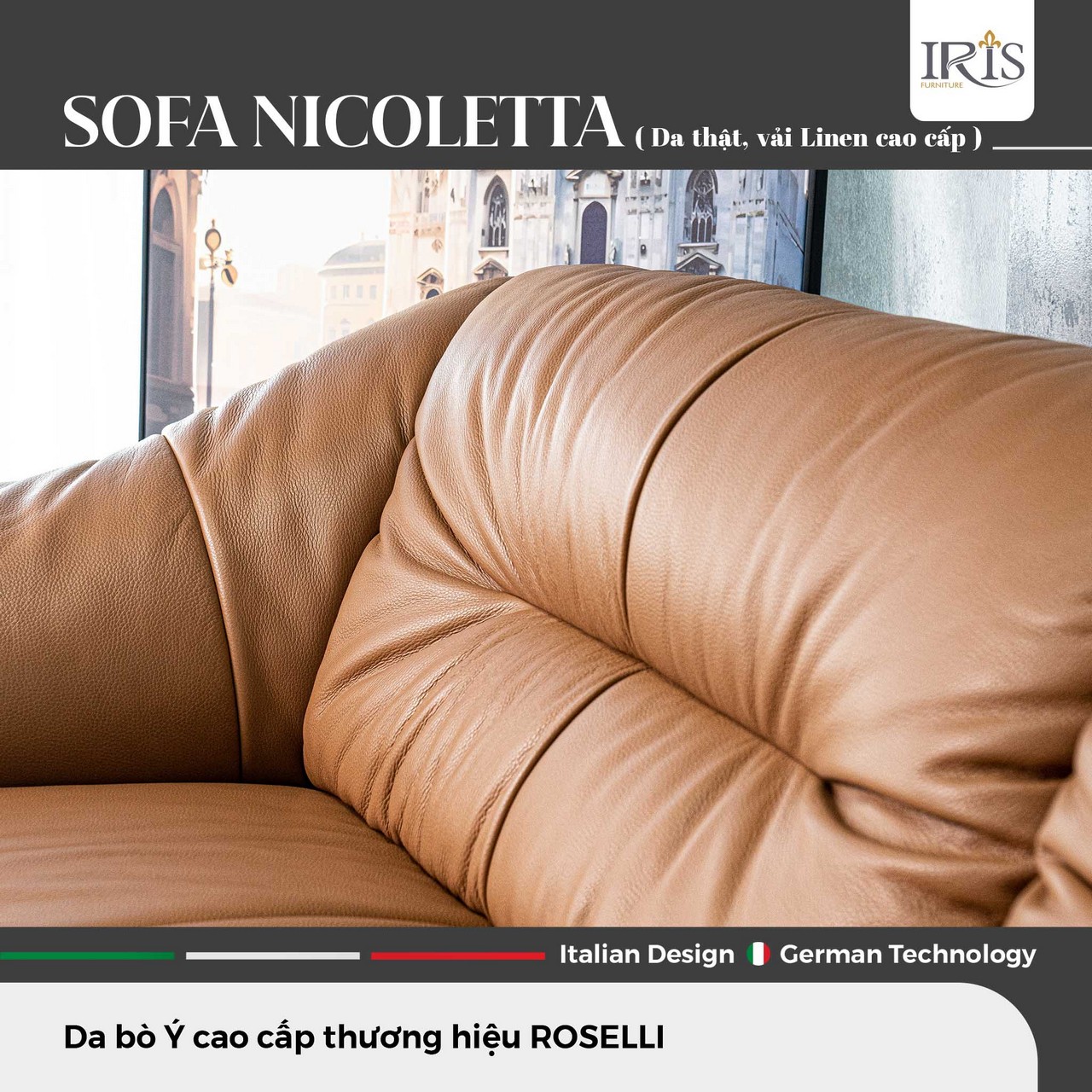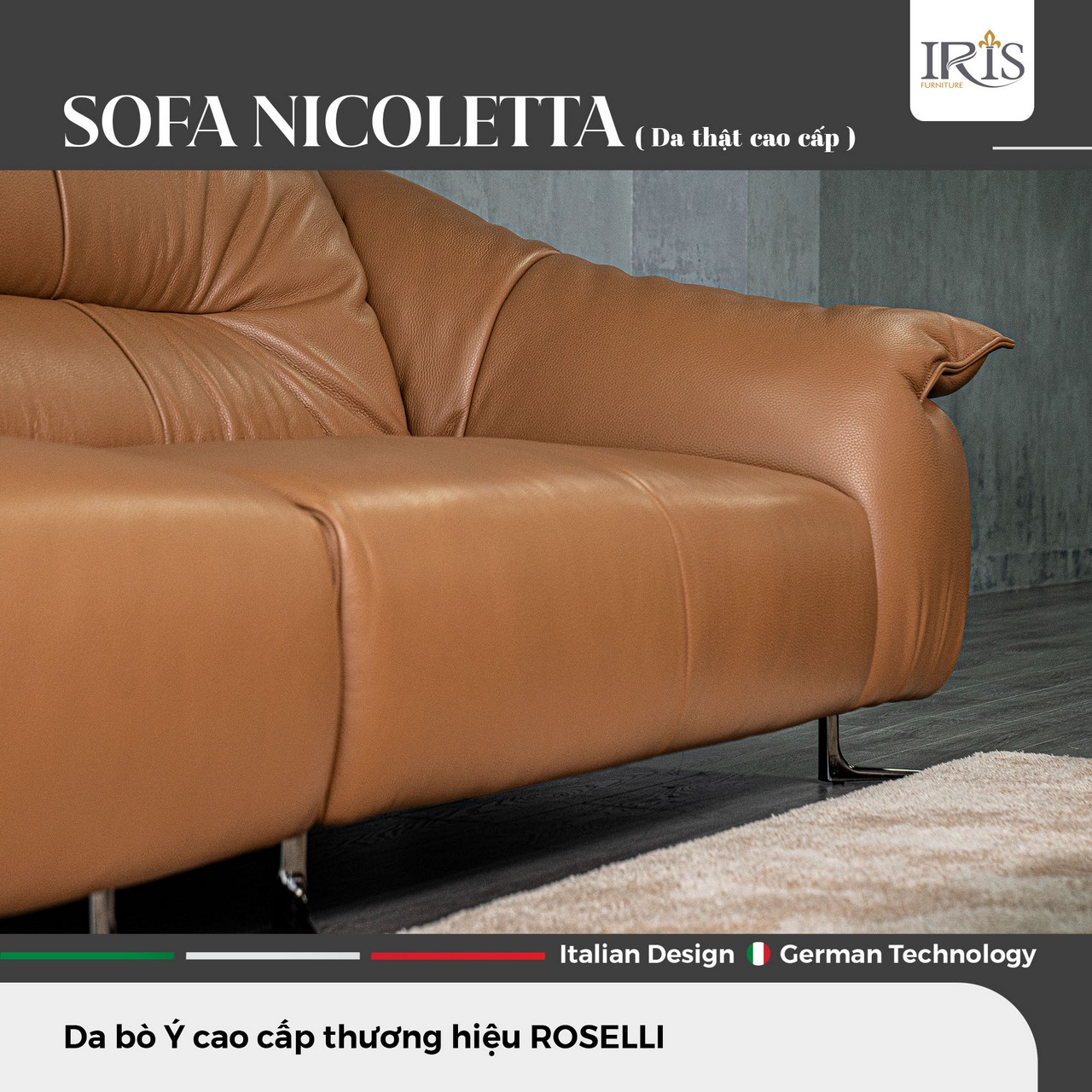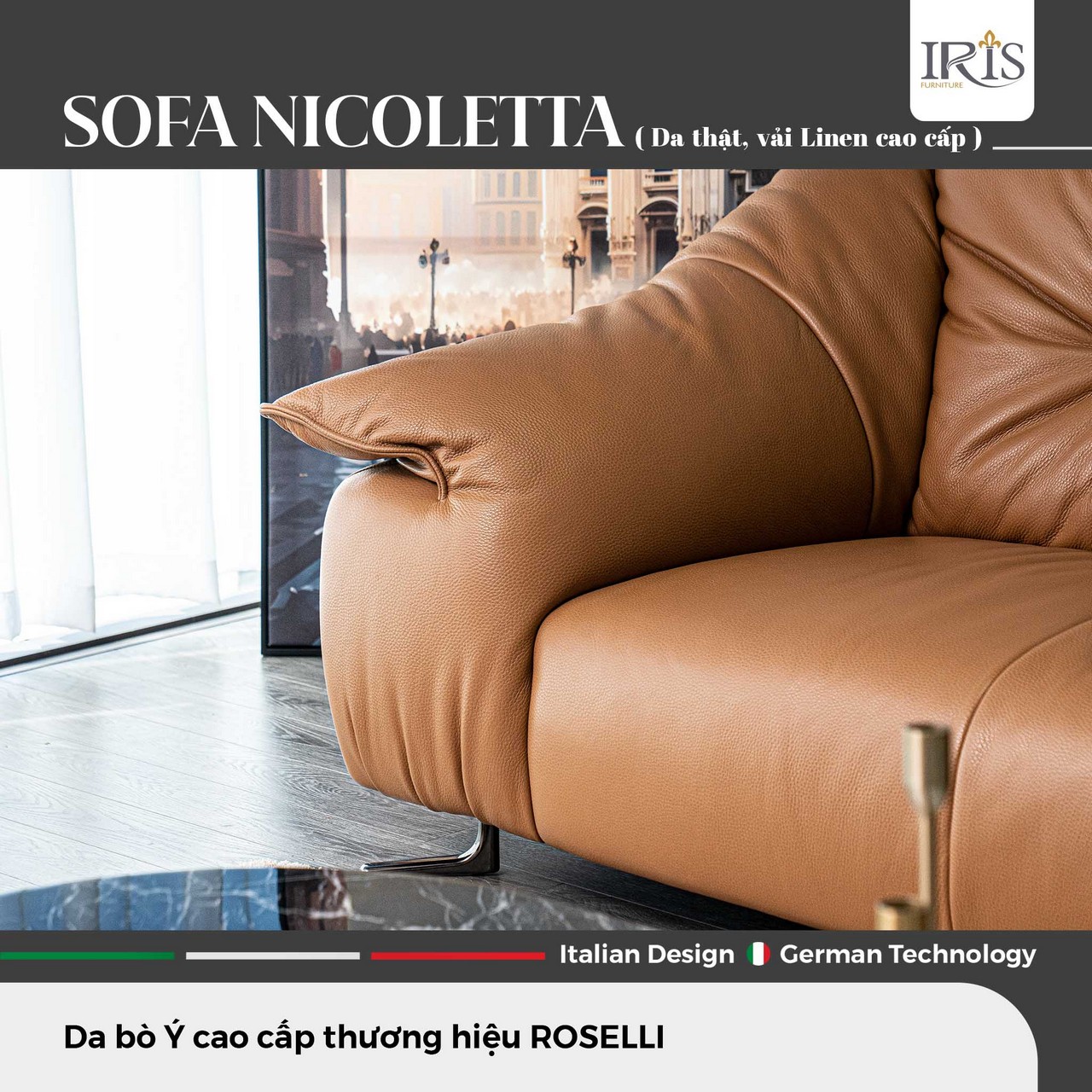 Sở Hữu Ghế Sofa Nicoletta — Đệm Mút Siêu Đàn Hồi, Da Bò Ý Nguyên Tấm