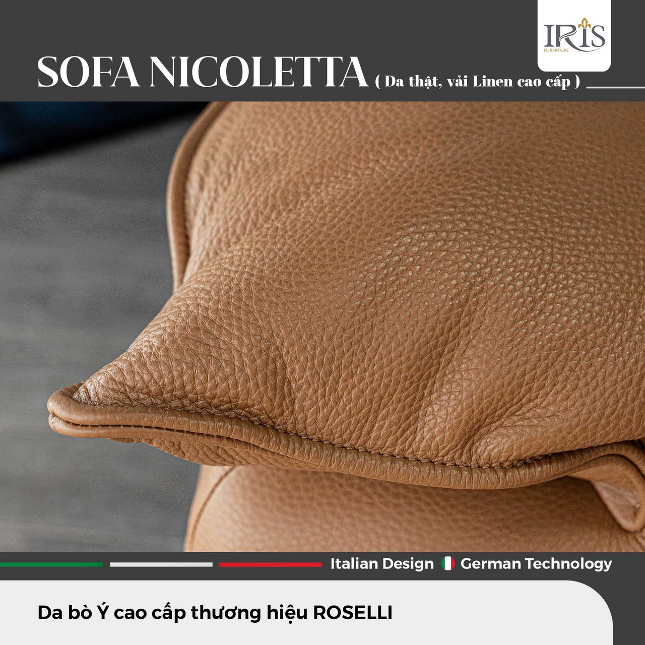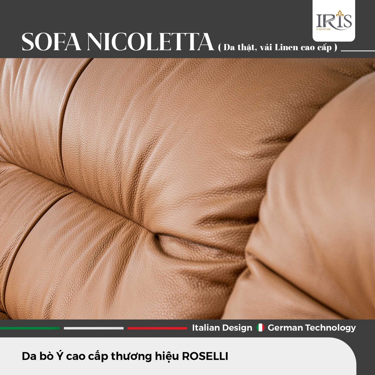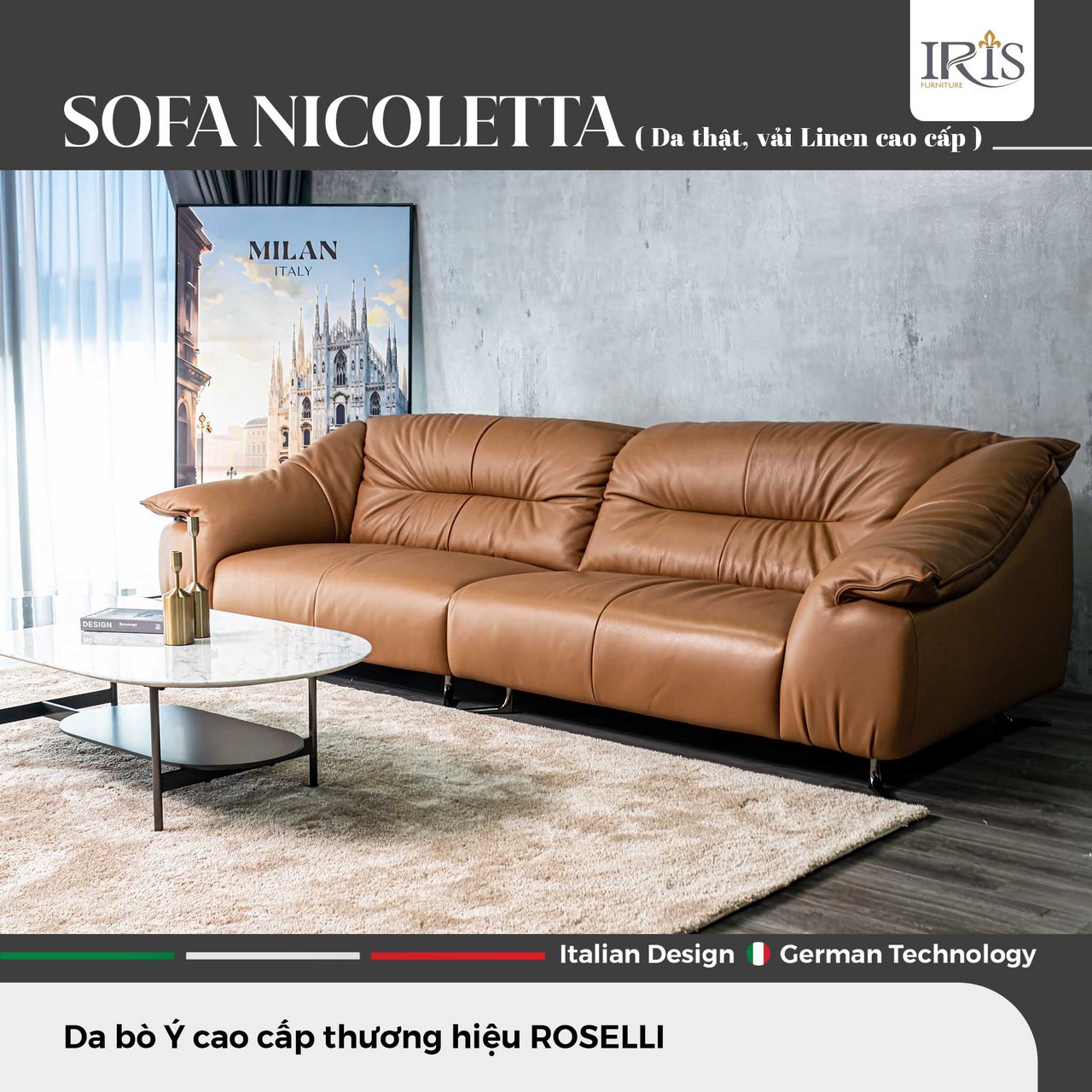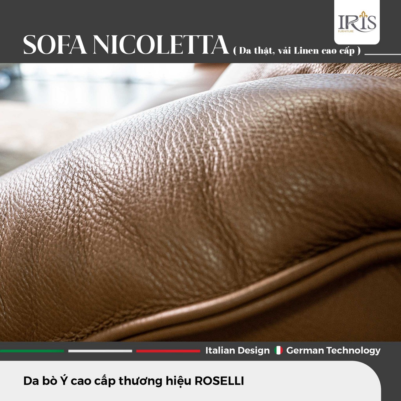 Sở Hữu Ghế Sofa Nicoletta — Đệm Mút Siêu Đàn Hồi, Da Bò Ý Nguyên Tấm
